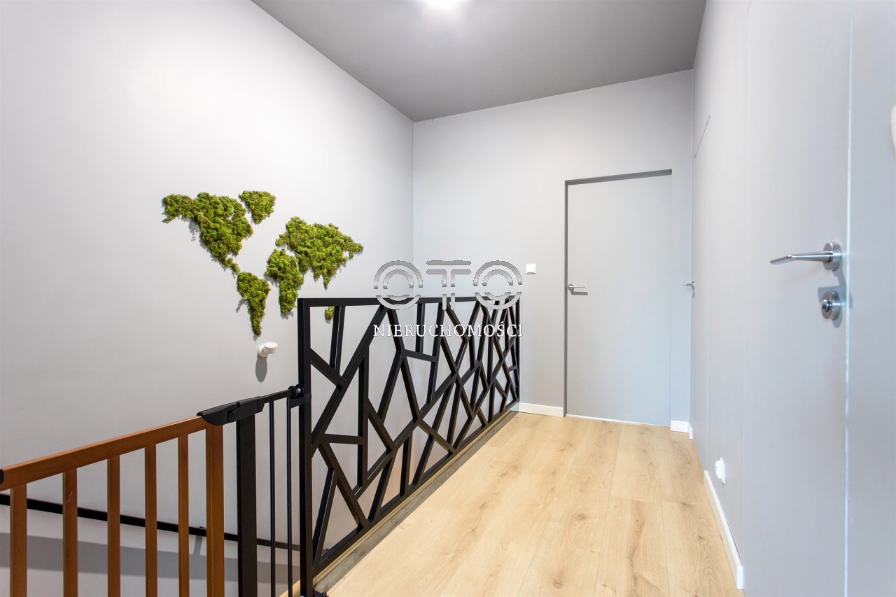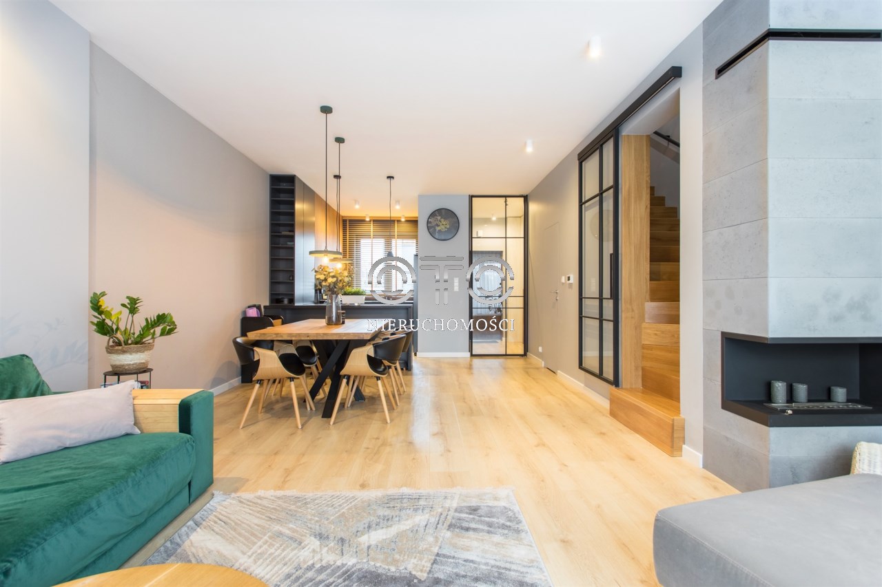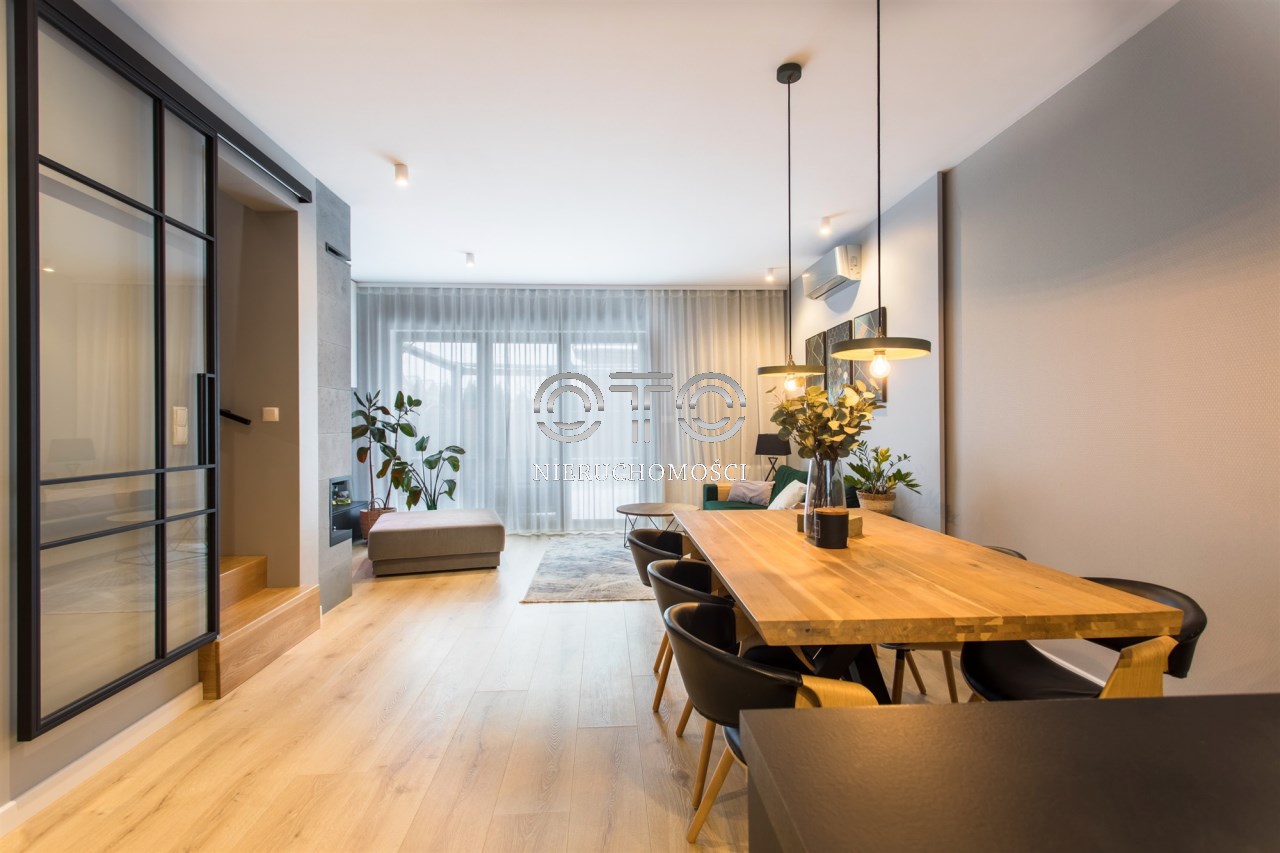 Nowy dom w zabudowie szeregowej z 2019 roku będący częścią inwestycji Nowe Karwiany, znajdujący się pośród niskiej, kameralnej zabudowy.