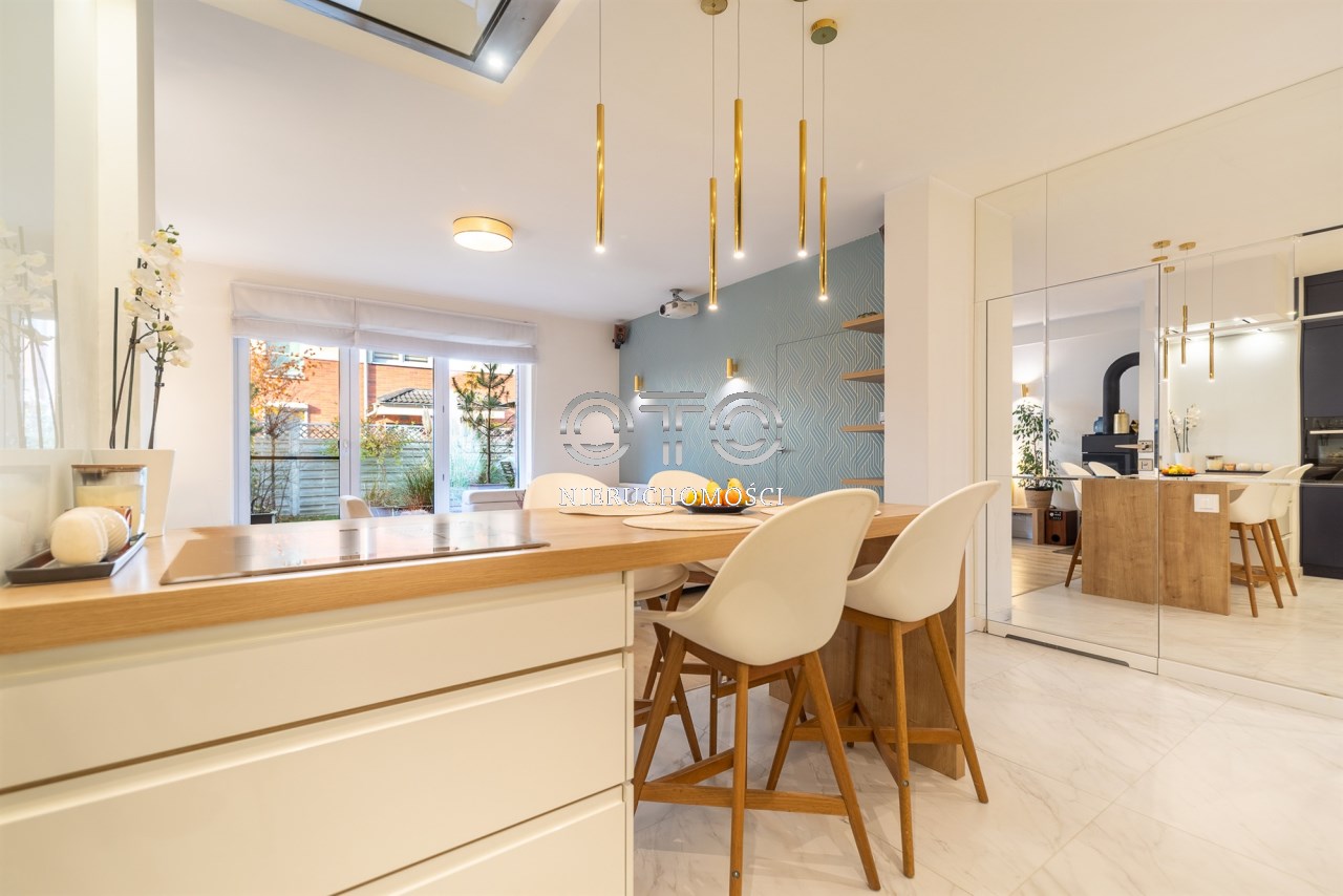Dostępny jest system inteligentnego sterowania SMART, ogrzewanie podłogowe w łazience i części aneksu kuchennego, elektryczne rolety zewnętrzne. W aranżacji przestrzeni wykorzystano drzwi z ukrytymi ościeżnicami. Czynny, klimatyczny kominek.