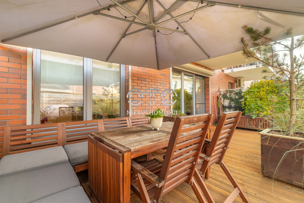Do mieszkania przynależy zaaranżowany, ogrodzony taras z ogrodem (około