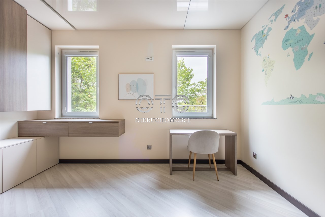 Z sypialni i gabinetu oraz salonu na drugim poziomie rozciąga się unikatowy widok na otwartą przestrzeń z bujną zielenią.