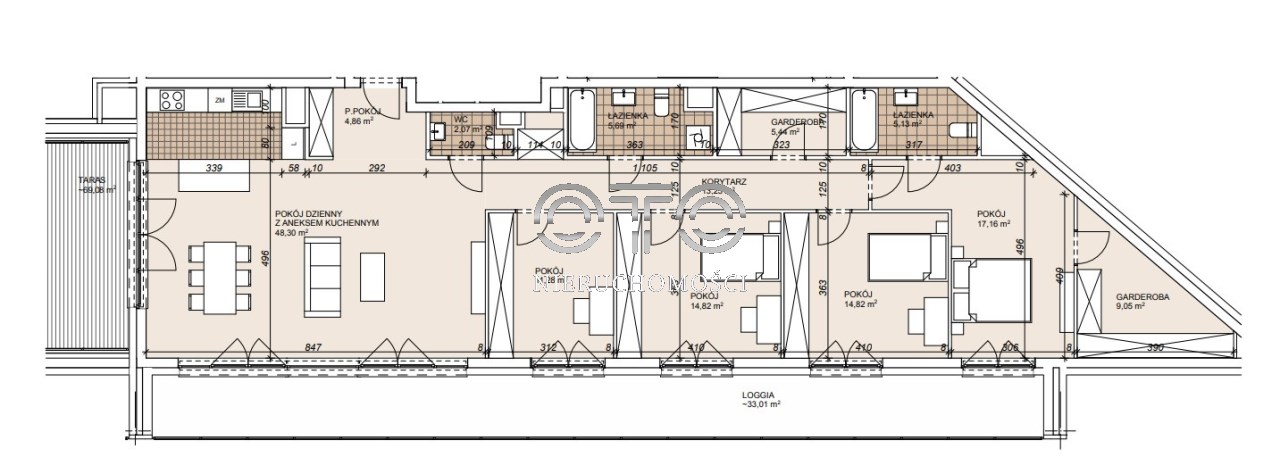 | Powierzchnia balkonów/tarasów | 100,00 m² |