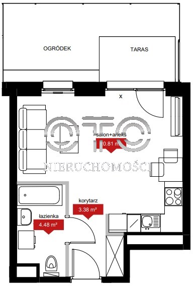 - pokoju dziennego z aneksem kuchennym (możliwość wydzielenia sypialni)
