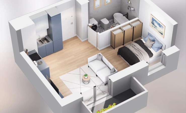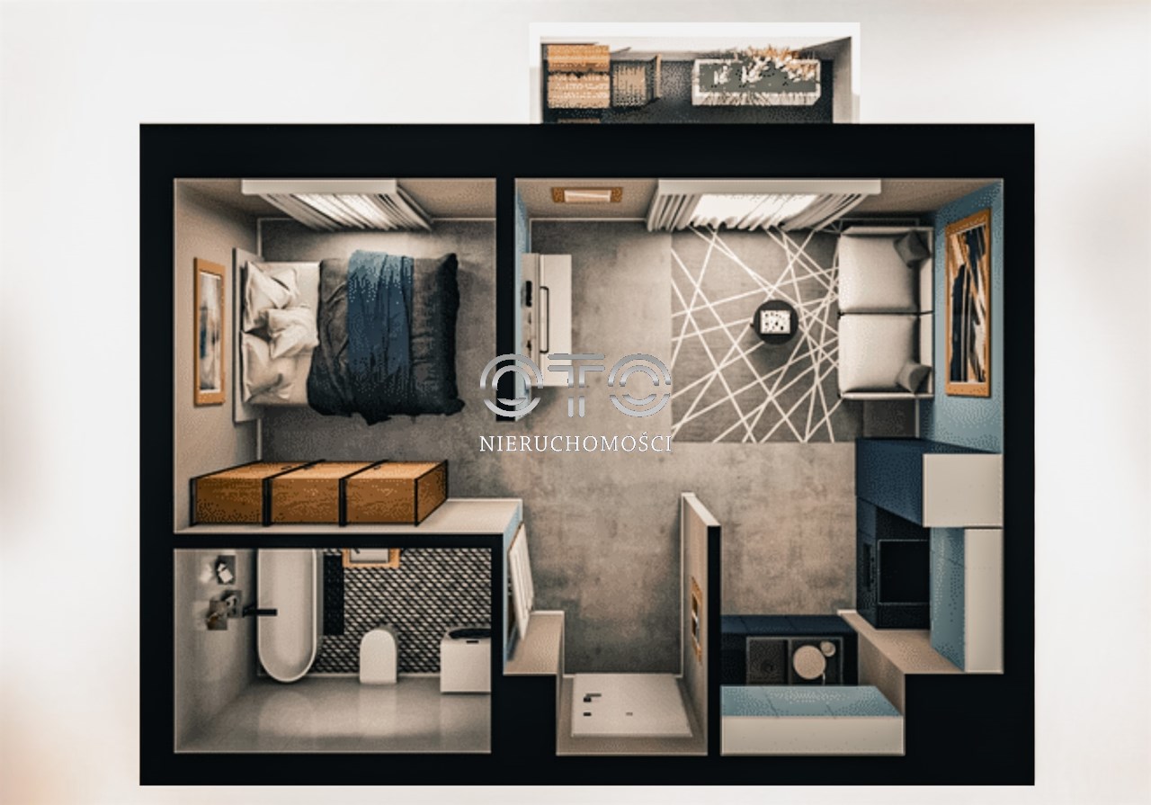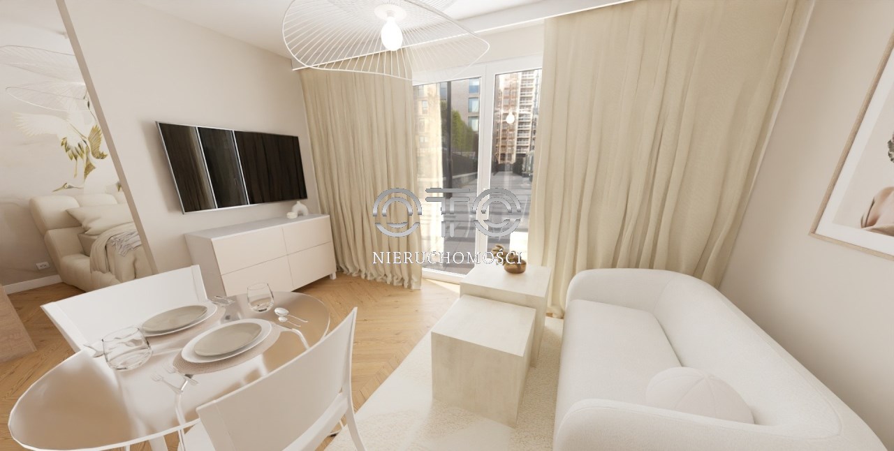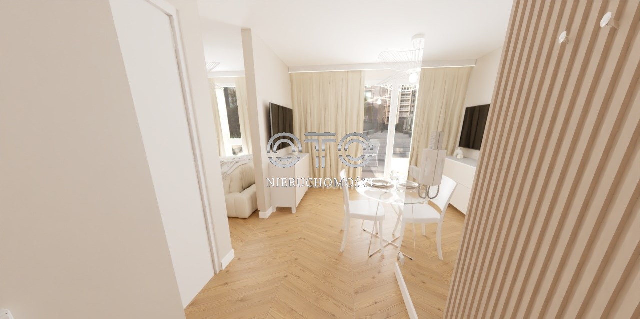 Kawalerka (o powierzchni około 28,50mkw) z możliwością wydzielenia oddzielnej sypialni, usytuowana na pierwszym piętrze nowego budynku z 2024 roku będącego cześcią osiedla Lokum Porto.