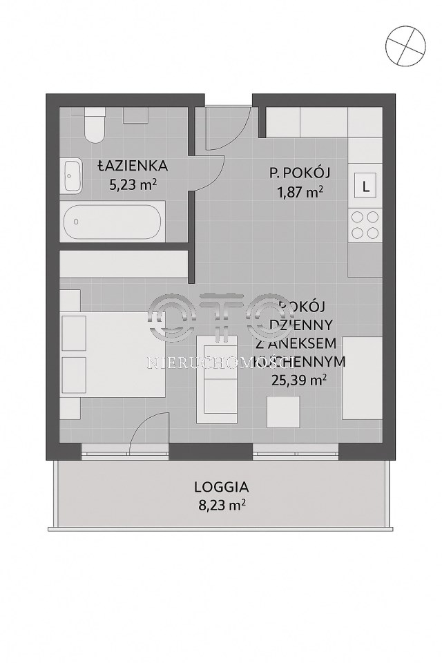 - salonu z aneksem kuchennym z wnęką sypialnianą