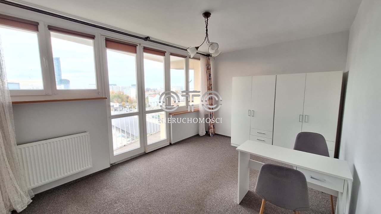 Ogromnym atutem prezentowanej nieruchomości jest pełen rozkład, balkon oraz piękny widok na panoramę miasta.