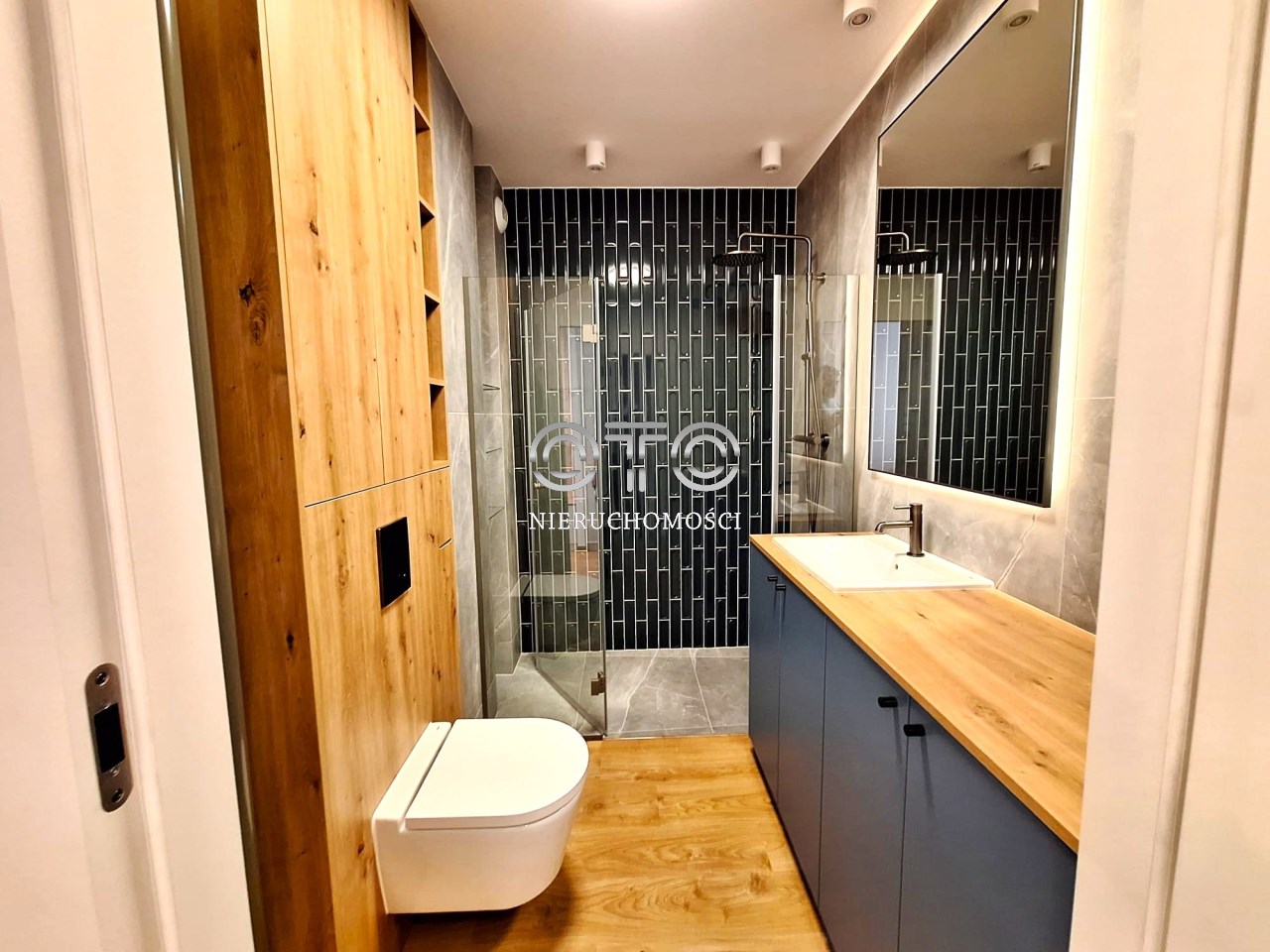- pełna zabudowa i umeblowanie łazienki i WC