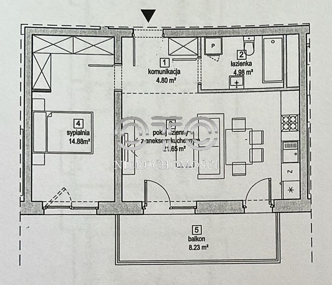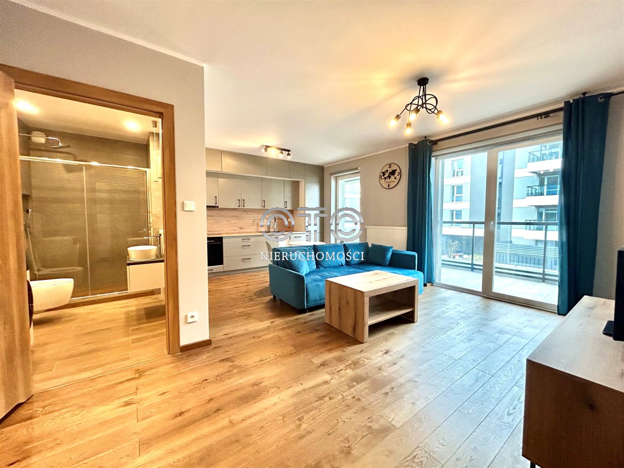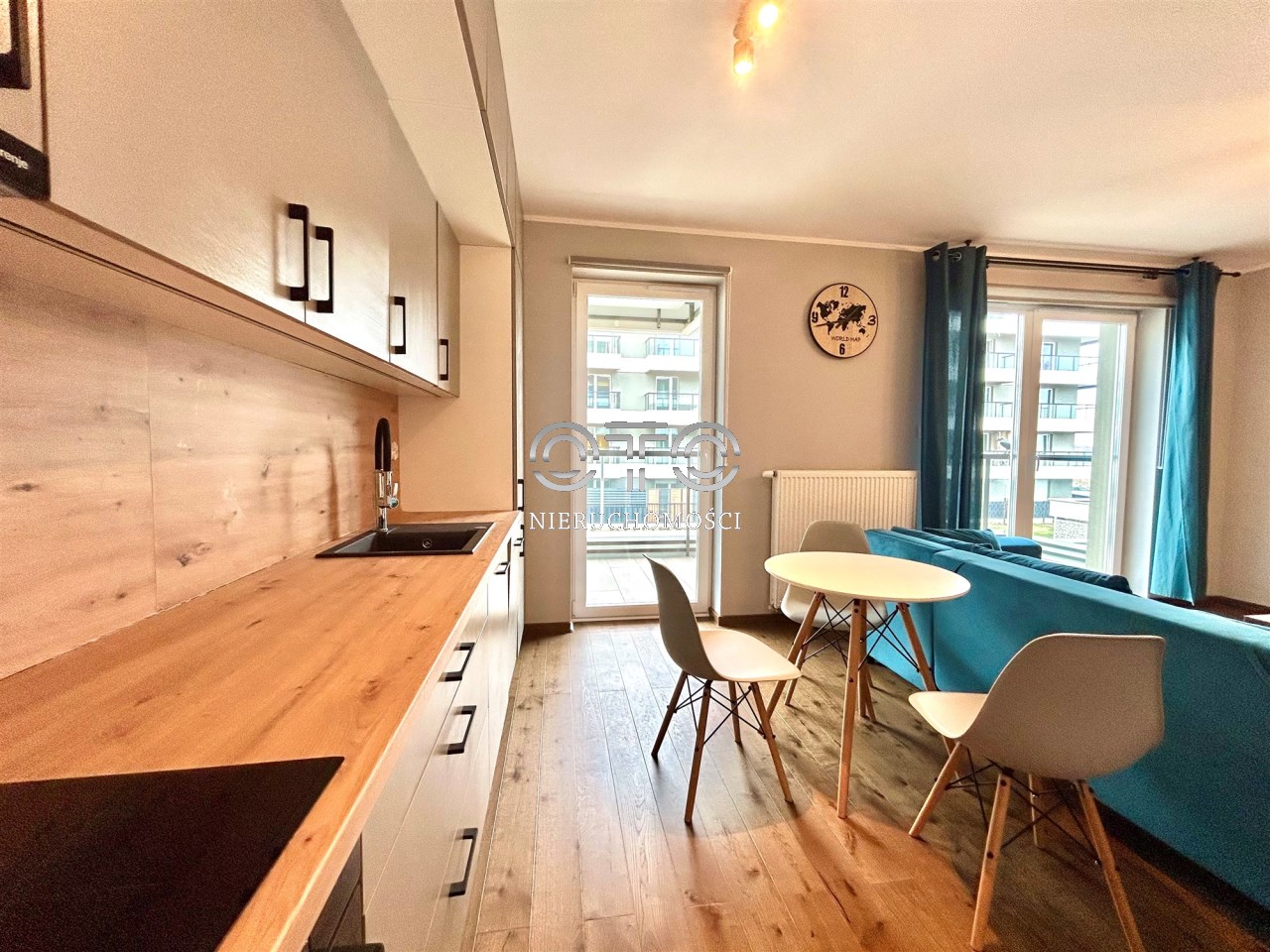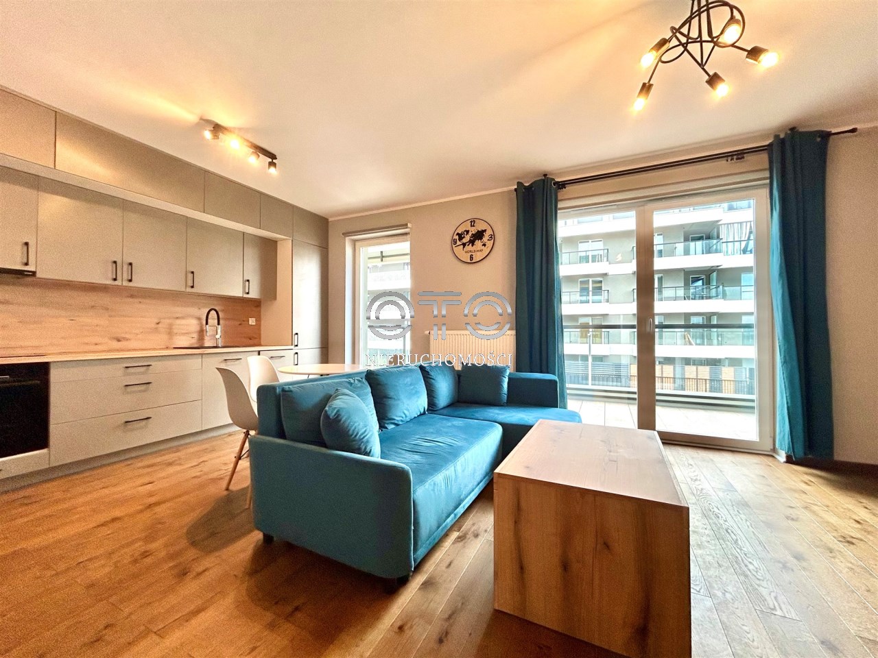 - salonu z aneksem kuchennym - około 22 mkw - to rzadkość przy tym metrażu mieszkania!