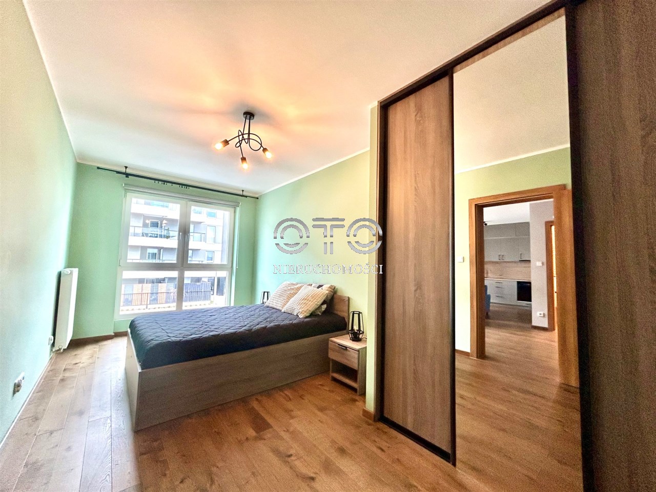 Zabudowa kuchenna i szafa w sypialni - na wymiar od stolarza. W kuchni komplet sprzętów AGD - zmywarka, okap, lodówka, płyta grzewcza.