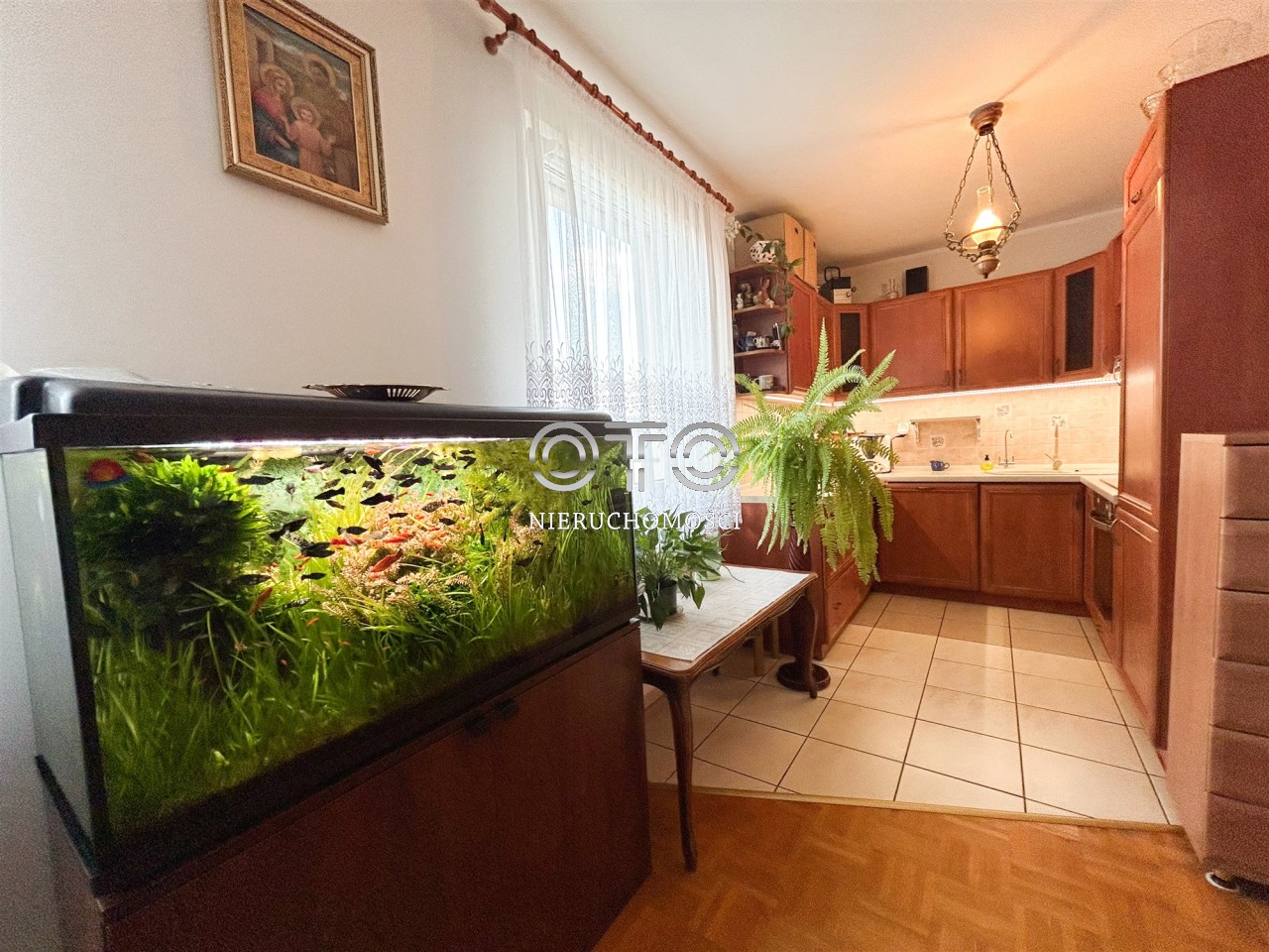 Drewniane podłogi (parkiet dębowy), okna PCV.