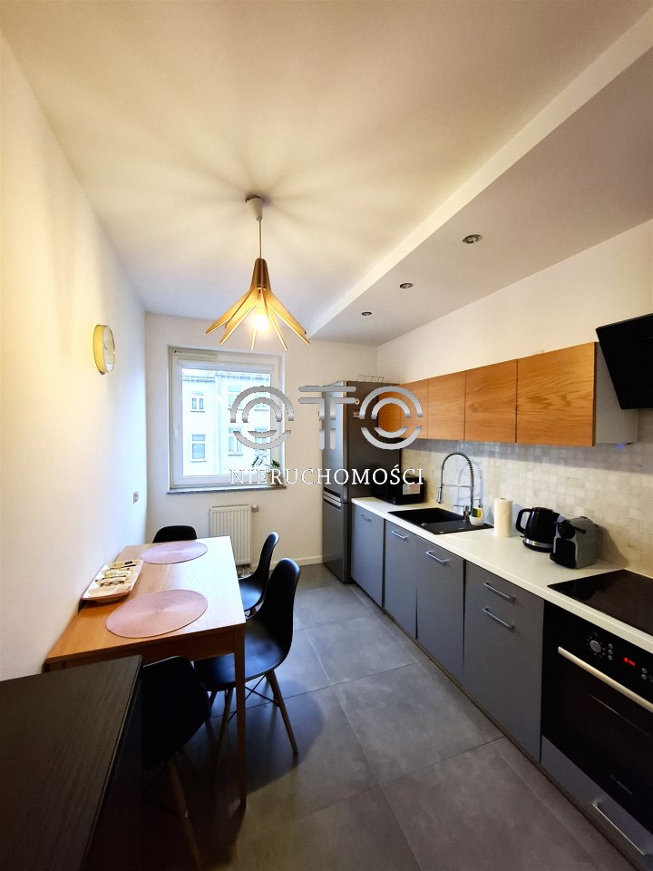 Mieszkanie urządzone i wyposażone, z oknami od podwórka dzięki czemu jest w nim cicho. Dwa osobne pokoje, osobna jasna i wyposażona kuchnia z meblami i sprzętem AGD, w pełni urządzona łazienka i przedpokój.