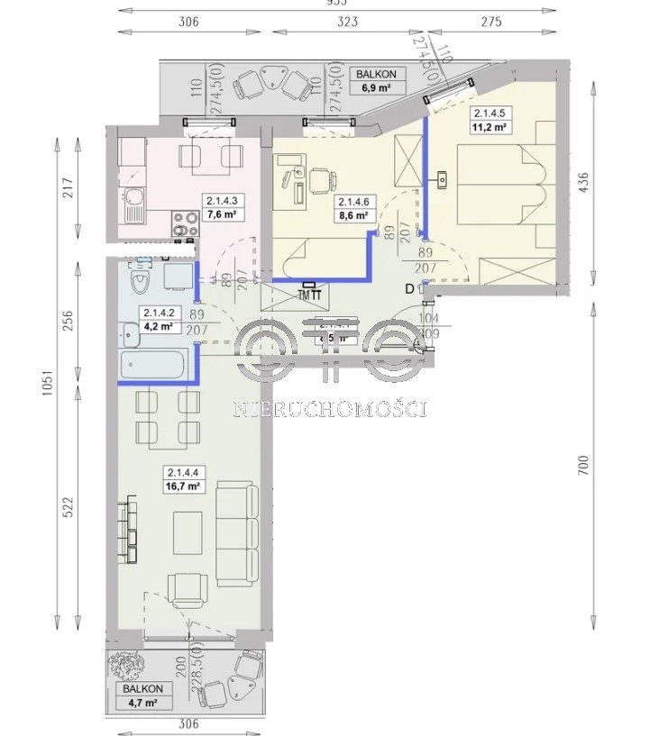 - dwa balkony