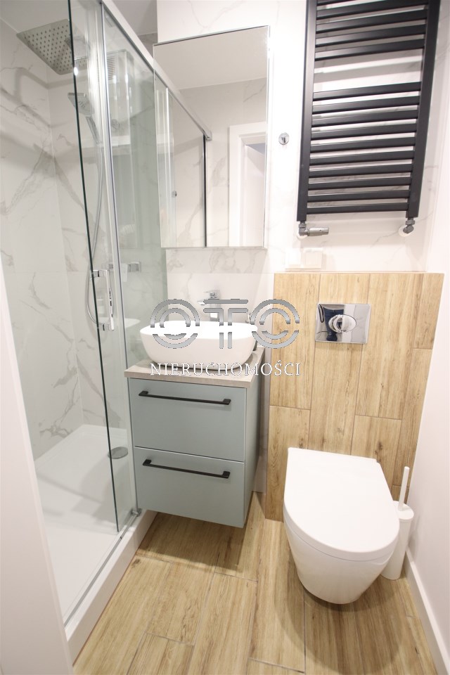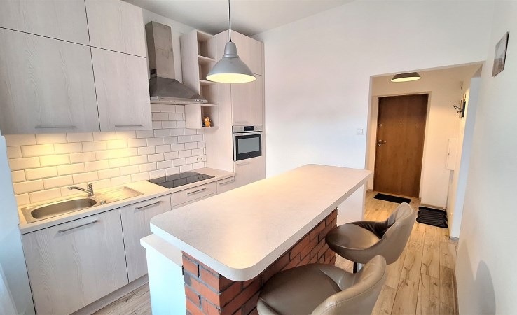 Nieruchomość została wykończona "pod siebie" materiałami wysokiej klasy, w salonie panele, duża szafa na cichy domyk, klimatyzacja, w pełni wyposażona przestronna kuchnia (zmywarka, piekarnik, płyta indukcyjna, duża lodówka). W łazience wygodna kabina prysznicowa.