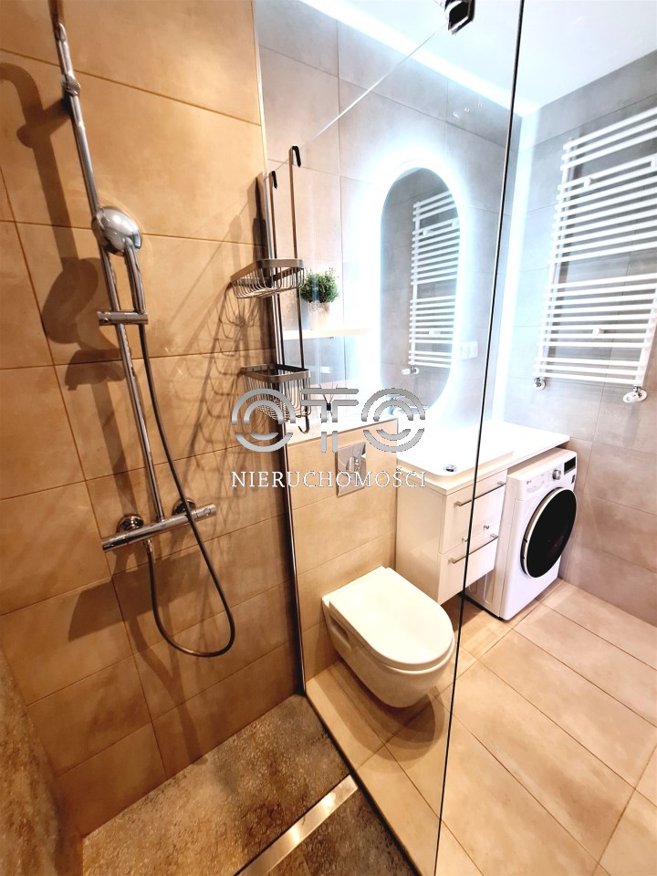 Mieszkanie zostało urządzone i wyposażone 3 lata temu. Kuchnia w pełni umeblowana i wyposażona w sprzęt AGD ( zmywarka, płyta indukcyjna, lodówko-zamrażarka), komfortowa łazienka z prysznicem, z dużym lustrem w nowoczesnej glazurze. Pokój w pełni umeblowany z wyjściem balkonem. Właściciele zadbali o każdy detal przy urządzaniu mieszkania tak aby było ono wygodne i funkcjonalne.