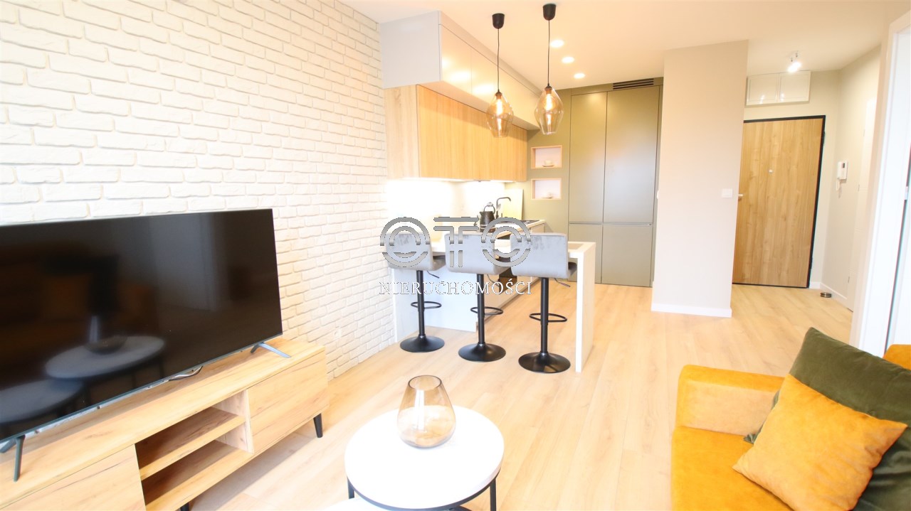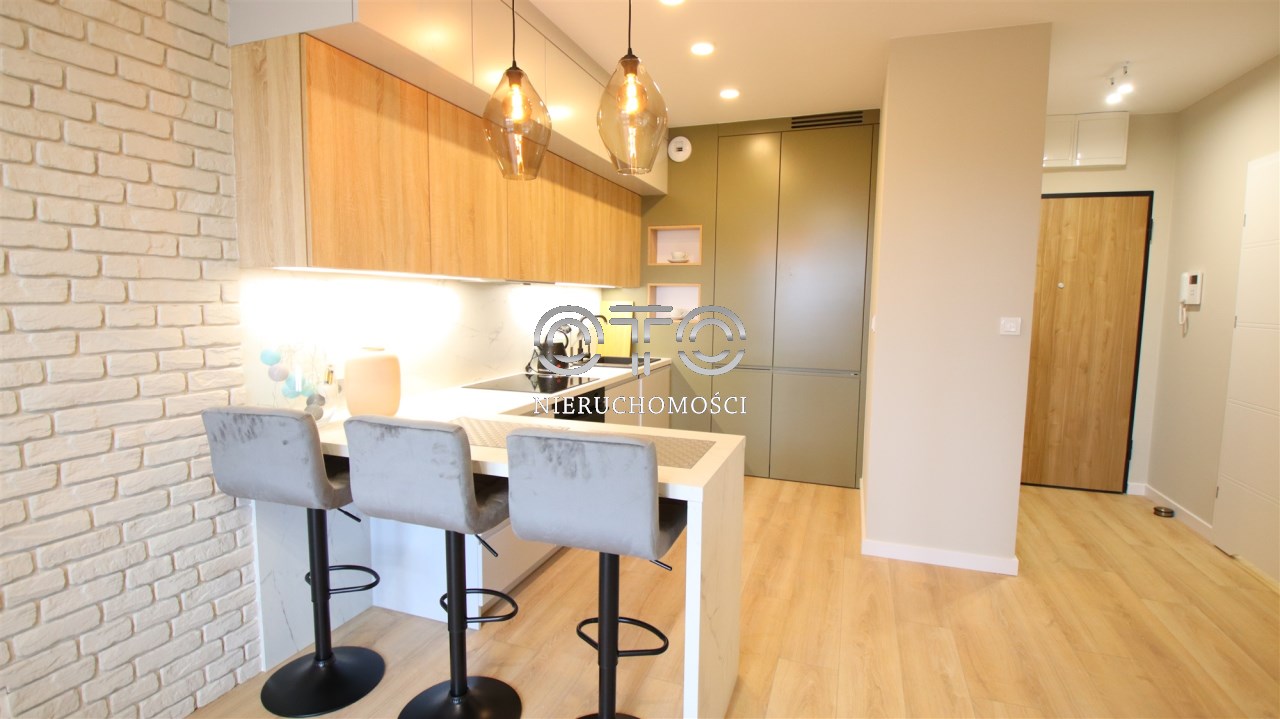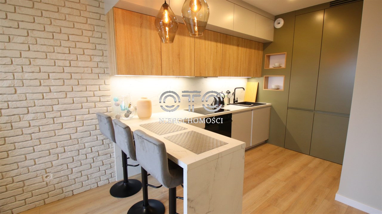 Nieruchomość została wykończona materiałami bardzo dobrej klasy, w salonie panele, w pełni wyposażona przestronna kuchnia z wyspą (zmywarka, piekarnik, płyta indukcyjna, duża lodówka). W sypialni duże łóżko z materacem, duża szafa.