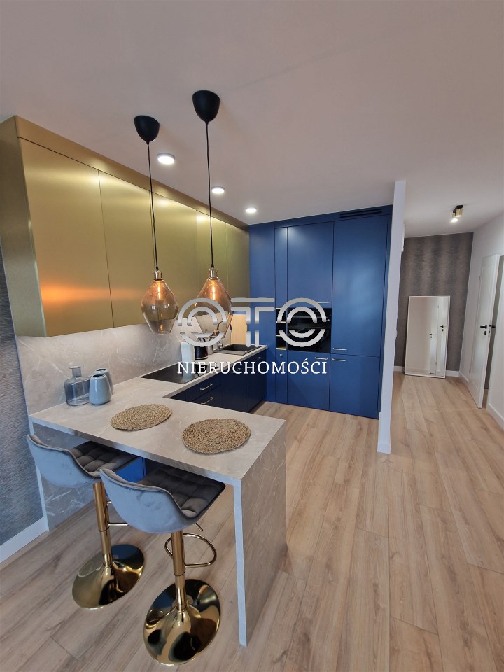 Nieruchomość została wykończona materiałami bardzo dobrej klasy, w salonie panele, w pełni wyposażona przestronna kuchnia z wyspą (zmywarka, piekarnik, płyta indukcyjna, duża lodówka). W sypialni duże łóżko z materacem, duża szafa.