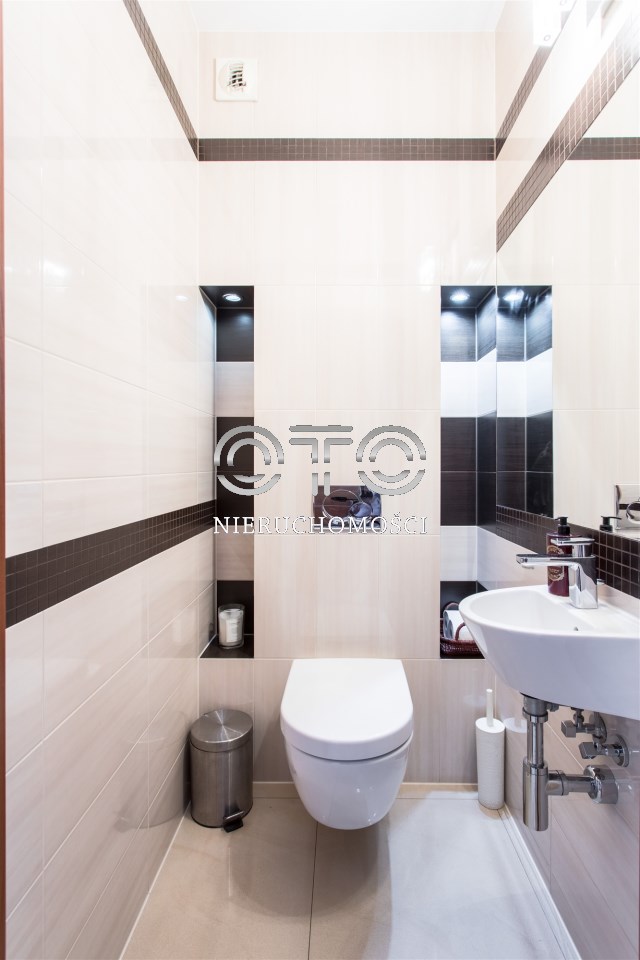 Z przedpokoju prowadzą wejścia do każdego z pokoi, pomieszczenia gospodarczego ( garderoby), komfortowej łazienki z wanną oraz oddzielnego WC dla gości.