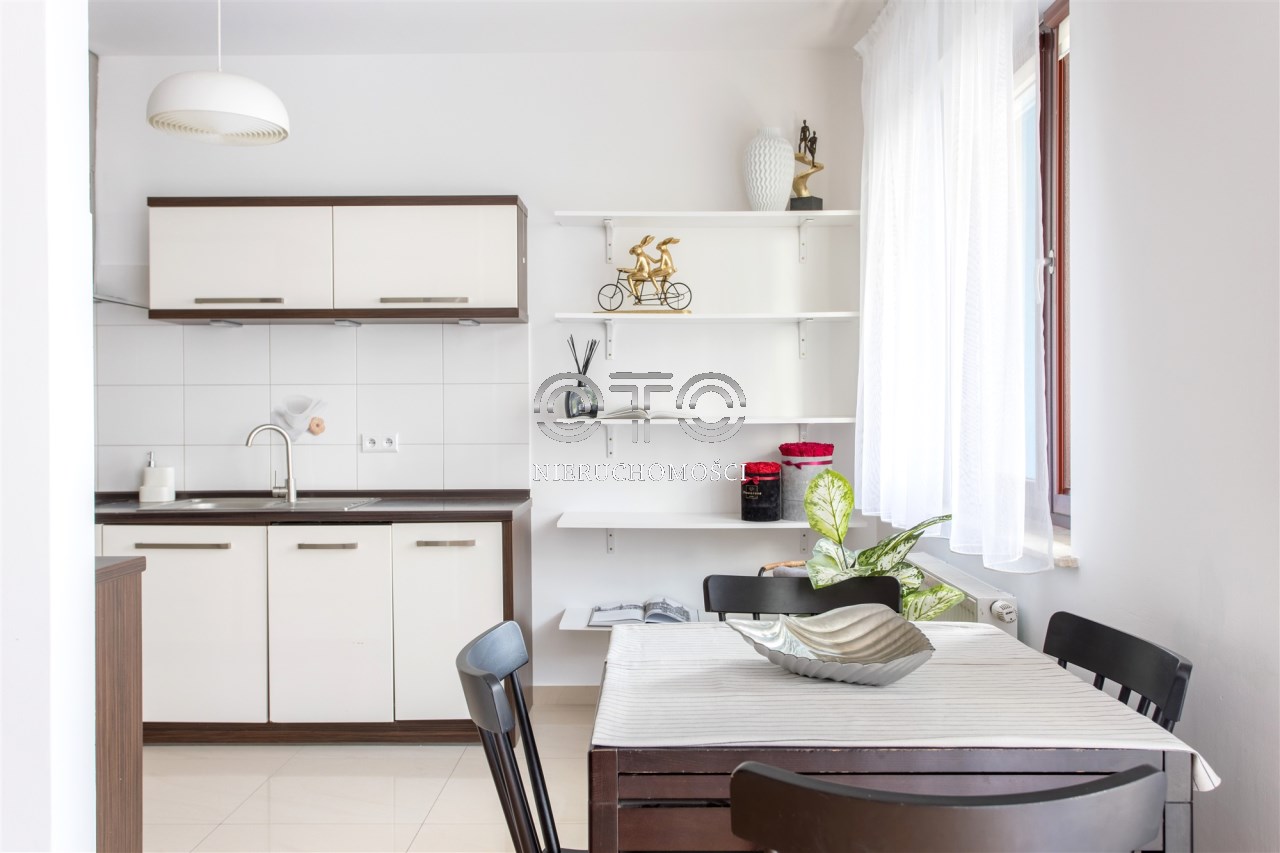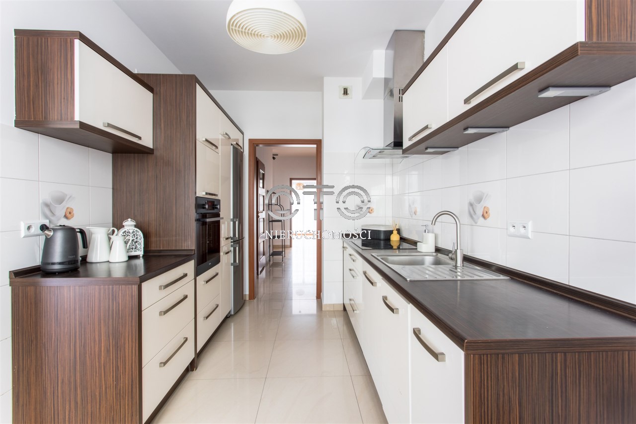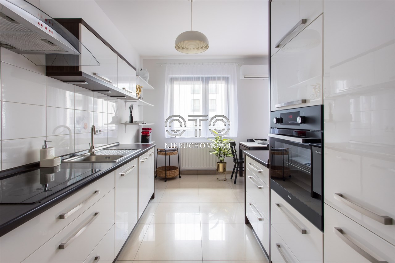Wydzielona, wyposażona kuchnia z oknem posiada meble wyposażone w pełne AGD (zmywarka, piekarnik, płyta indukcyjna, duża lodówka) oaz niezbędne akcesoria kuchenne.