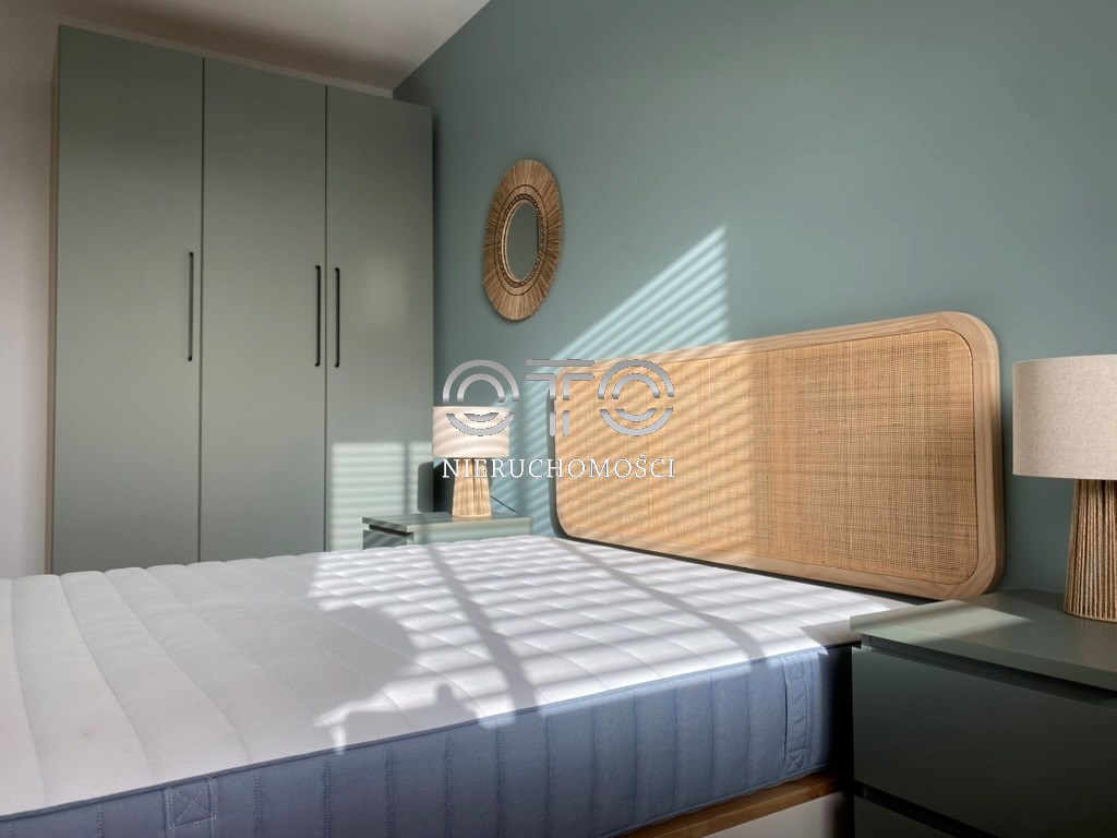 W salonie rozkładana sofa, wygodny stół. Kuchnia jest komfortowo zaprojektowana na wymiar z pełnym AGD (zmywarka, piekarnik, płyta indukcyjna, duża lodówka). W sypialni duże łóżko z materacem oraz duża szafa, a także biurko do pracy zdalnej.