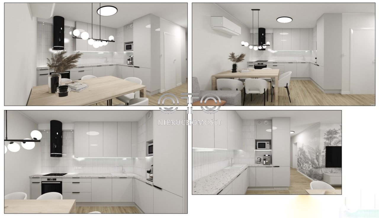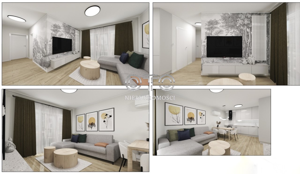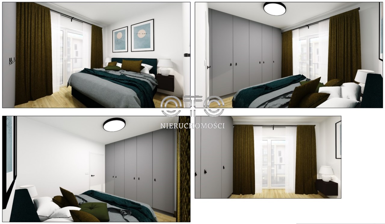 Wyposażenie mieszkanie do indywidualnego uzgodnienia z Najemcą. Część zdjęć oferty stanowią wizualizacje. Wykonano zabudowy meblowe - w kuchni wraz ze wszystkimi niezbędnymi sprzętami AGD, szafę w sypialni, szafkę RTV, niebawem szafę w przedpokoju.